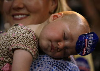 Poor kid. Not only does being dragged to a political event when when you would much rather be biting the dog suck...But, it's a Hillary event. Gack! The child will be permanently scared. She'll probably want to move to Canada, or something.